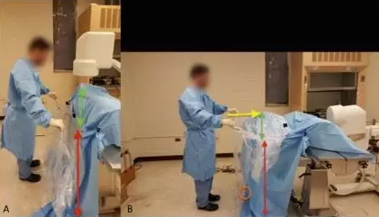 1、為了減少醫生和手術區污染的風險,手術醫生開發了無菌保護膜來防護手術區污染方法。具體方法是通過在C形臂可能暴露于手術區上方的部分套上無菌保護膜,來將其與污染源隔離,從而降低C形臂對手術區造成污染的可能。
