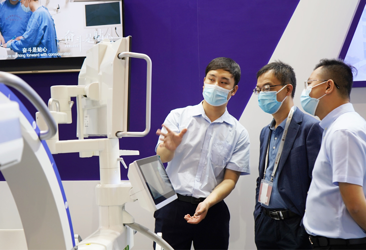 大會主席、中國醫師協會骨科醫師分會會長張英澤院士、有名骨科專家于秀淳教授等多位專家親臨我司的展臺參觀指導,共同探討我司新的科技成果,專家們肯定我司在C形臂領域取得的地位,對新上市的高端平板3D C形臂和一體化平板小C的臨床操作和圖像質量給予了高度評價。