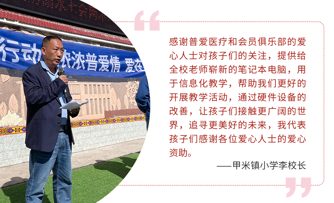 10月27日上午,普愛醫療和會員俱樂部成員向甲米鎮小學捐贈了多臺筆記本電腦、書包、書籍等愛心物資。