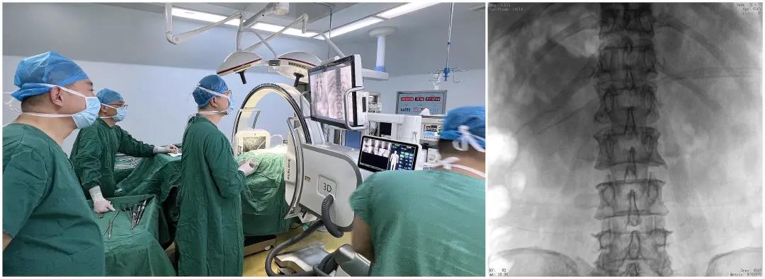 醫生在影像引導下在L5/S1椎弓根處打入醫用螺釘