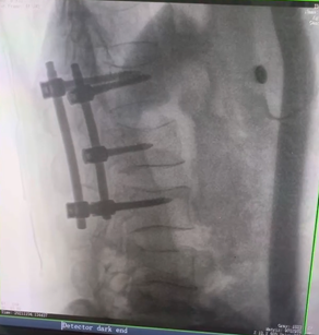 例如治療先天性脊柱側(cè)后凸畸形,由于脊柱自身復(fù)雜的解剖結(jié)構(gòu)限制,使得脊柱外科手術(shù)對(duì)于精確度有著較高要求。以往我們只能采用傳統(tǒng)的正側(cè)位圖像來(lái)判斷螺釘置入的位置,現(xiàn)在三維C形臂特有的類CT斷層成像,使得治療過(guò)程可視化,立體化,在術(shù)中非常直觀地判斷螺釘植入的準(zhǔn)確度。可有效引導(dǎo)術(shù)者植入后路螺釘并切除半錐體。同時(shí)可以在術(shù)中實(shí)時(shí)驗(yàn)證手術(shù)效果。有效地縮短了手術(shù)時(shí)間,降低手術(shù)風(fēng)險(xiǎn),避免了不必要的術(shù)后翻修手術(shù)。