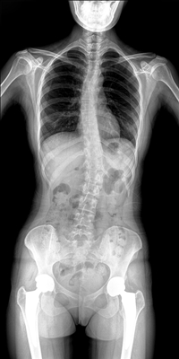 臨床需要對患者的脊柱情況有全面了解,故而術前術后均需要均需要借助DR拍攝X光片便于分析病情、明確診斷及術后觀察治療效果。大視野動態DR可以對患者的脊柱進行長尺寸攝影,一次拍攝就能獲取完整的脊柱全景圖像。診斷醫生通過拍攝后的影像測量全脊柱的生物角度、Cobb角等,為脊柱側彎的畸形矯正患者術前術后的檢查提供重要的診斷依據。