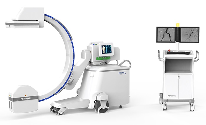 作為一種更加先進的技術(shù),數(shù)字平板探測器還在介入治療中被廣泛地應(yīng)用,如專門為周邊介入治療而設(shè)計的移動式平板介入C形臂PLX7100A,它配備了新型的大尺寸非晶硅動態(tài)平板探測器,具有更大的視野范圍,能夠?qū)π亍⒏埂⑴枨粚崿F(xiàn)一次全覆蓋,減少曝光次數(shù)、降低輻射劑量、避免重疊遺漏、縮短手術(shù)時間。