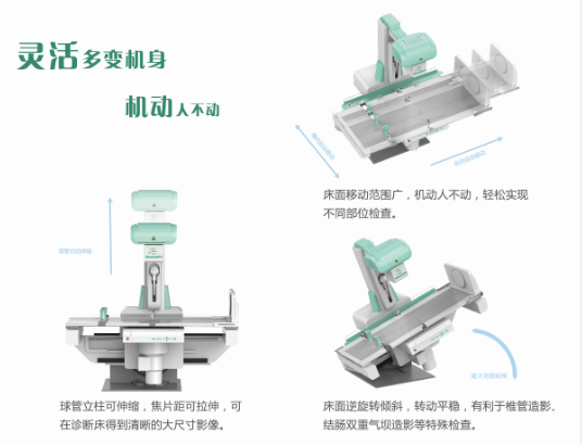 平板型動(dòng)態(tài)DR是一款集傳統(tǒng)平板DR和數(shù)字胃腸機(jī)功能為一體的多功能數(shù)字化X光機(jī),即可以實(shí)現(xiàn)平板的臨床用途,也可以實(shí)現(xiàn)數(shù)字胃腸機(jī)的臨床用途,集數(shù)字?jǐn)z影、數(shù)字透視和數(shù)字造影為一體,真正實(shí)現(xiàn)一機(jī)多用。